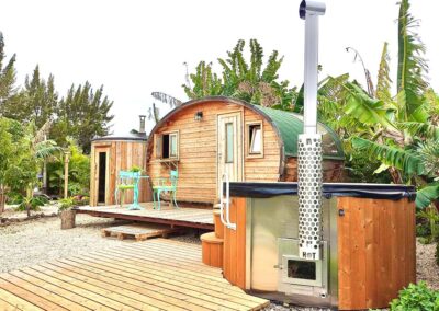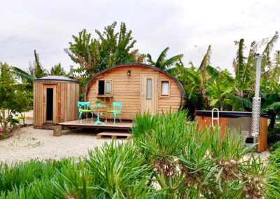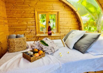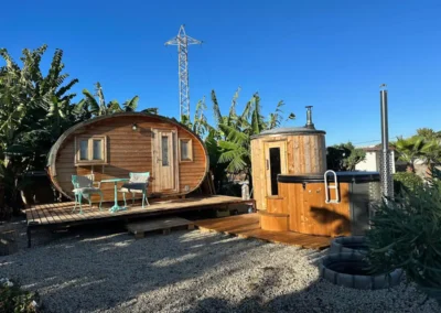 En este alojamiento fresco y colorido vivirás una experiencia muy refrescante, su forma redondeada te hará sentirte en otro mundo, su gran jacuzzy climatizado de chorros a presión te dejarán como nuevo. De uso compartido entre las dos casitas Amany y Arrebol.