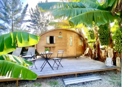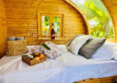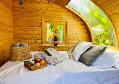 Es la gemela de Arrebol, con aires románticos esta casita oval con su agradable olor a madera fresca no pasará desapercibida para los huéspedes, su diseño y calidez la hace una opción magnífica para parejas.