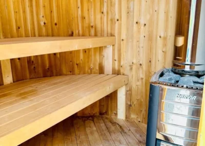 Una estancia fresca, donde el olor a madera pura traslada tu mente a los recuerdos en la naturaleza, su bañera cálida exterior exclusiva y el olor que desprende la madera al calentarla te envolverán y harán de esta experiencia un momento muy especial .