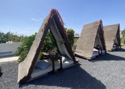 Esta bonita cabaña ubicada en bonito complejo Serendipia Natural Social Club en medio de sus jardines te hará disfrutar de una experiencia única y diferente , dispone de baño privado con ducha, además de jacuzzi privado exterior climatizado por leña para relajarse durante su estancia y poder disfrutar de las bonitas noches estrelladas de la isla.
