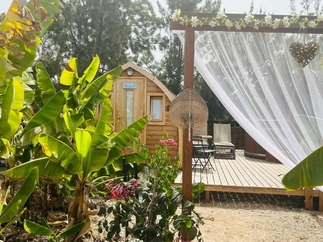 Esta bonita cabaña ubicada en bonito complejo Serendipia Natural Social Club en medio de sus jardines te hará disfrutar de una experiencia única y diferente , dispone de baño privado con ducha, además jacuzzi privado exterior ambos calendados por leña para relajarse durante su estancia y poder disfrutar de las bonitas noches estrelladas de la isla.